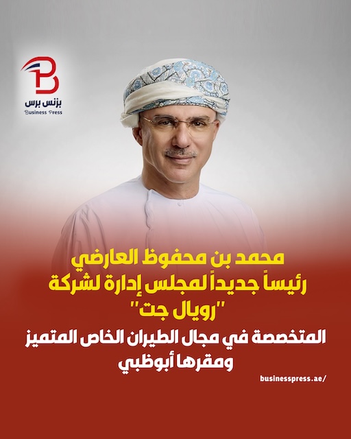 أعلنت شركة “رويال جت”، المتخصصة في مجال الطيران الخاص المتميز، ومقرها أبوظبي، عن تعيين محمد بن محفوظ العارضي رئيسًا جديدًا لمجلس إدارتها.