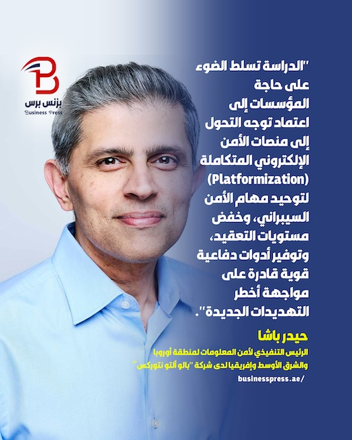 وأكد باشا أن “هذا الأمر يسلط الضوء على حاجة المؤسسات إلى اعتماد توجه التحول إلى منصات الأمن الإلكتروني المتكاملة (Platformization) من أجل توحيد مهام الأمن السيبراني، وخفض مستويات التعقيد، وتوفير أدوات دفاعية قوية قادرة على مواجهة أخطر التهديدات الجديدة”.