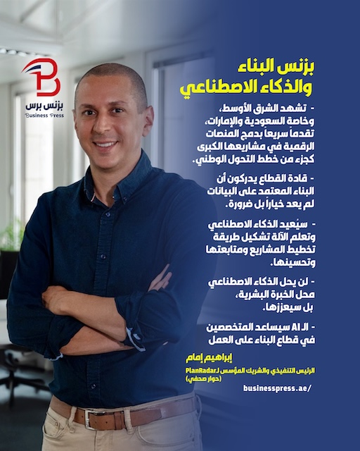 يقول إبراهيم إمام، الرئيس التنفيذي والشريك المؤسس لـPlanRadar، إن أبرز التحديات التي تواجهها الشركة تتمثل في قيادة فريق عالمي سريع النمو ويعمل عبر مناطق وثقافات مختلفة، مؤكداً أن الذكاء الاصطناعي سيضيف السرعة والأمان والدقة لقطاع البناء.