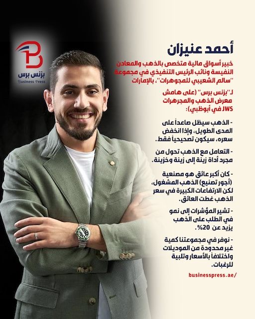 ويقول عنيزان لـ”بزنس برس”، على هامش معرض الذهب والمجورهرات “JWS” في أبوظبي: إن التعامل مع الذهب تحول من مجرد أداة زينة (خاصة الذهب المصنع) إلى زينة وخزينة”.. ولأن التجارة العالمية مرتبطة بالدولار، تسعى هذه الدول لإنشاء مكانة اقتصادية بديلة من خلال تنويع احتياطياتها والتركيز على الذهب”، مشيراً إلى أن “دولة الإمارات رفعت، حسب تقارير البنك المركزي، احتياطي الذهب بنسبة 25% مع هدف للوصول إلى 35% زيادة على الرصيد الموجود بحلول عام 2026”.