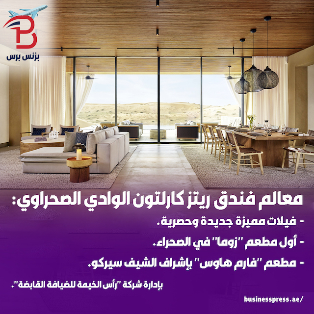 ويقدم هذا المنتجع الصحراوي، الحائز على جوائز، مجموعة من تجارب الطعام والترفيه والفيلات الجديدة في صحراء الوادي الهادئة، وفقاً لبيان صحفي وصل موقع “بزنس برس”.